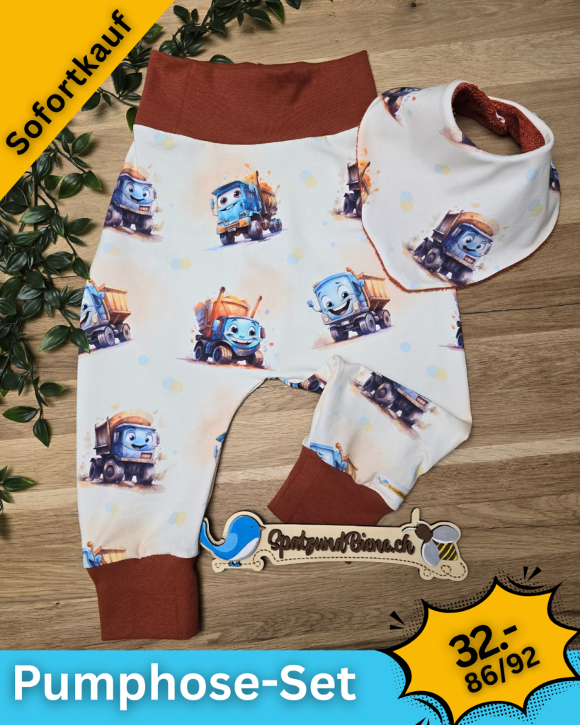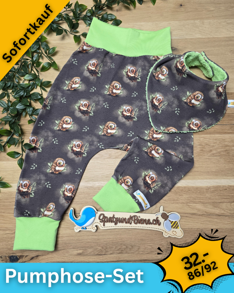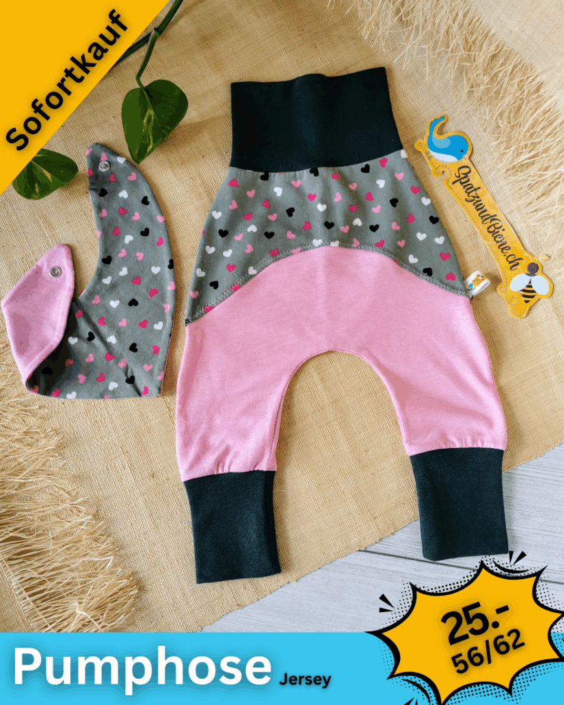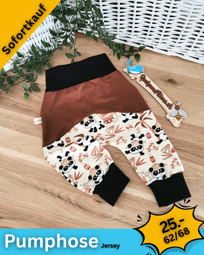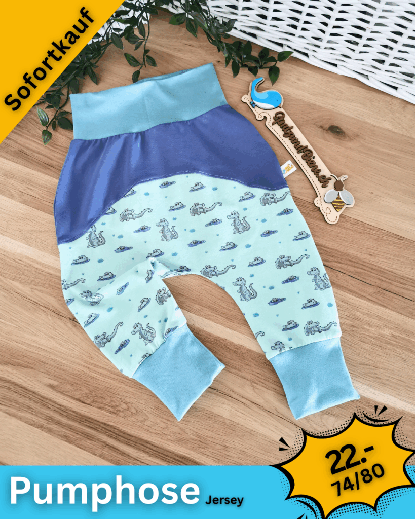 Gerne nähe ich deine Wunsch-Pumphosen mit Hosentaschen oder Tüdelkram. Bei etwas «grösseren» Babies die nicht mehr auf dem Bauch liegen, sind Kordeln ein schönes Plus.