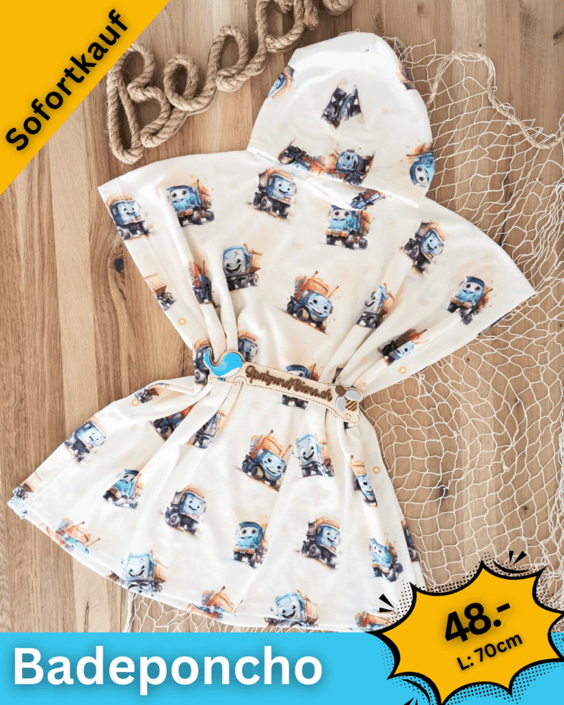 Badeponchos Kennt ihr meine coolen Badeponchos schon?ich nähe sie aus Strechfrottee.Sie sind saugfähighaben auf der Seite Druckknöpfeklein zusammenfaltbarpassen gut in die Badetasche oder Koffer.
