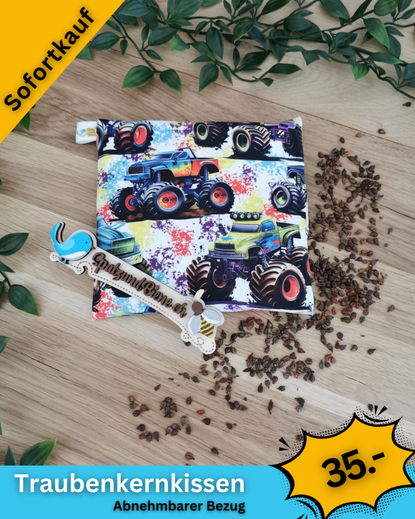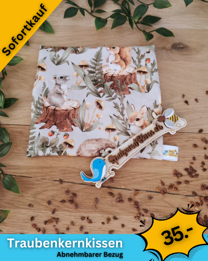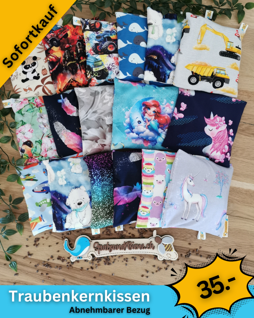 Ich nähe die Traubenkernkissen in ganz vielen Sujet mit abnehmbarem Bezug (Klettverschluss)