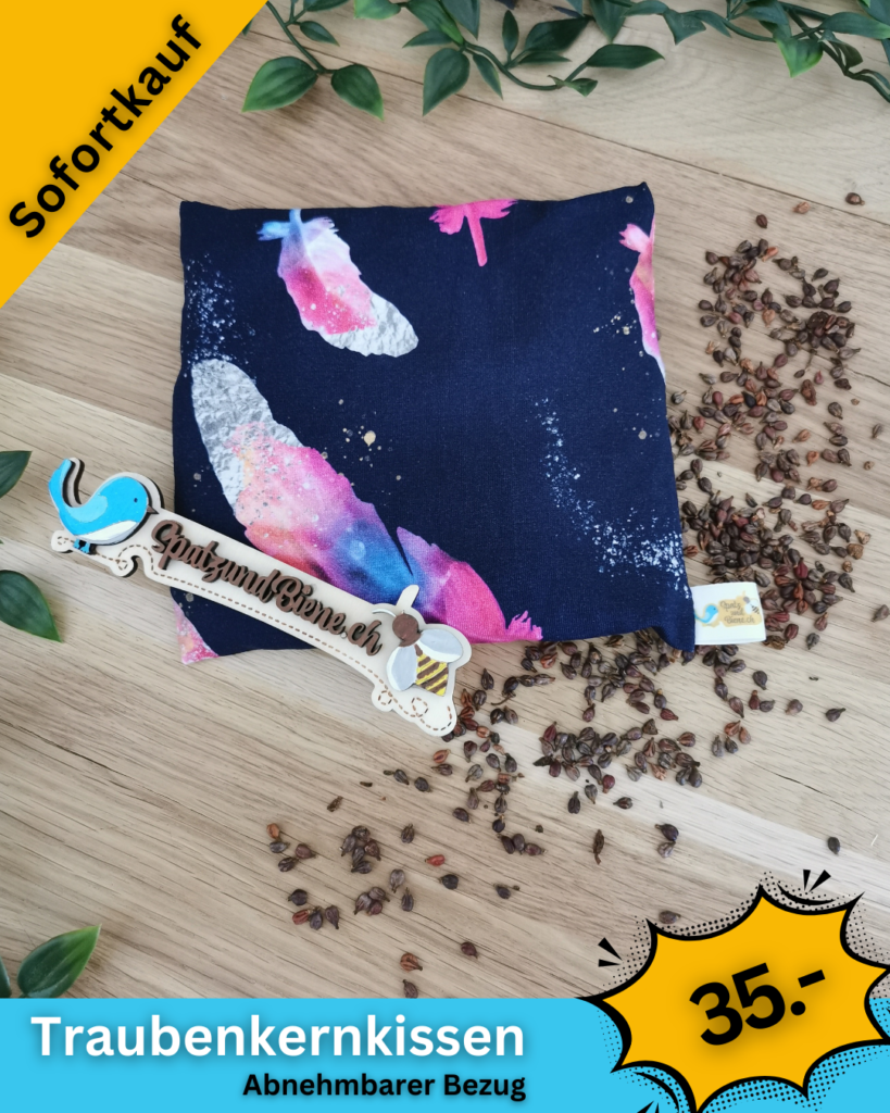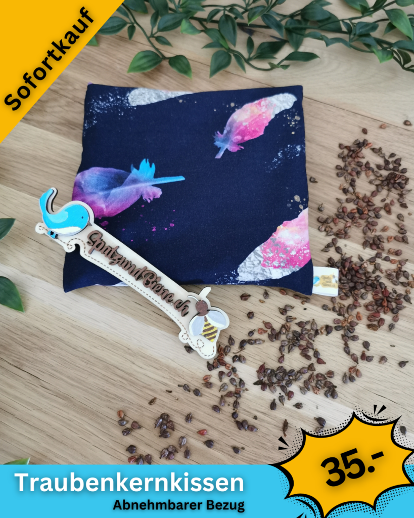 Die Kissen sind mit Traubenkerne, Kirschkerne oder Traubenkern-Lavendel Mischung erhältlich.